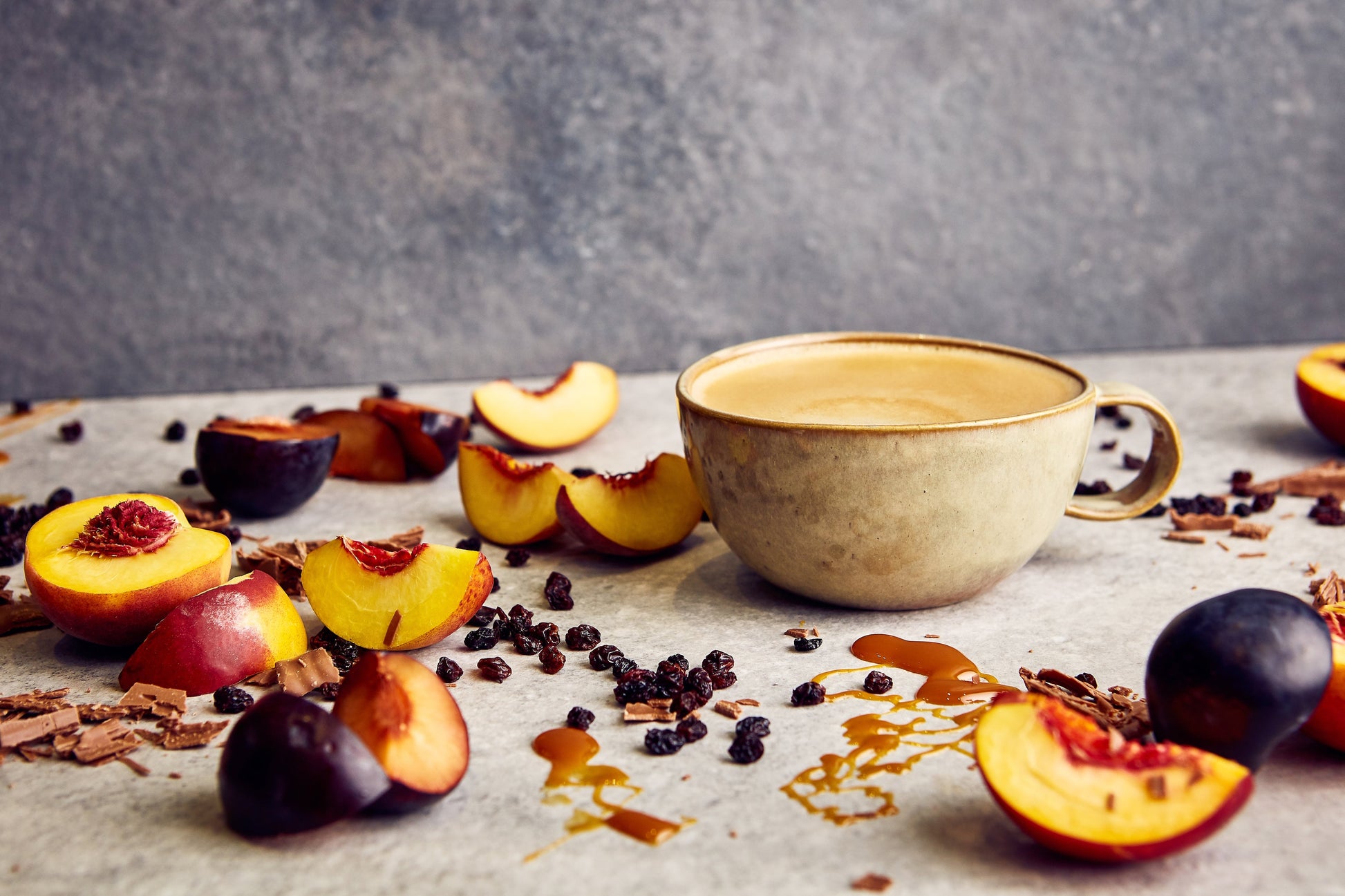 Ristretto bespoke blend has tasting notes of chocolate, caramel, stone fruits, and dried currants.